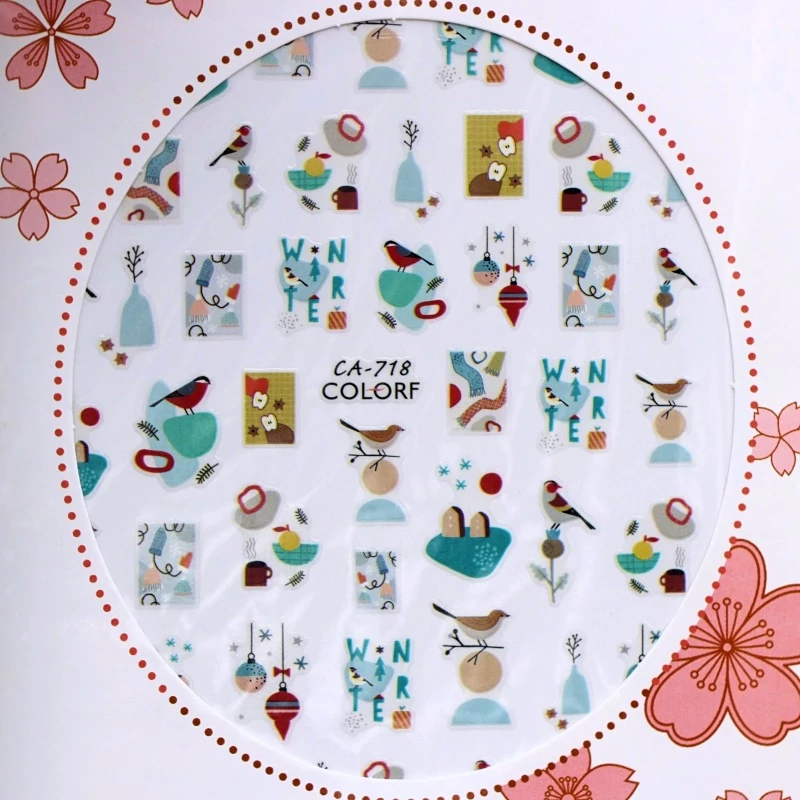 Karácsonyi körömmatrica 3D, színes mintákkal 3D-s kivitelben. Ragasztó réteggel ellátott matrica, önmagában is kitűnő dekoráció.