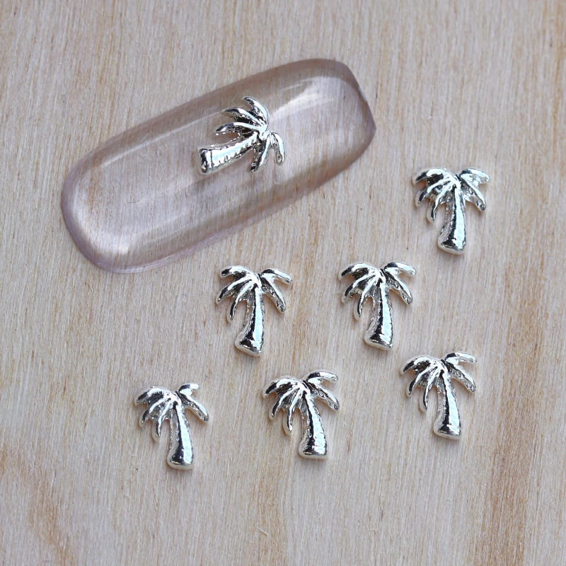 Körrömdekoráció ezüst színű pálmafa formában. Fém körömdísz mely lapos formájának köszönhetően a körömfelületre könnyen felhelyezhető, rögzítéséhez glue gélt ajánljuk. Nagyszerűen kombinálható strasszköveinkkel és egyéb nyári forma díszeinkkel.
