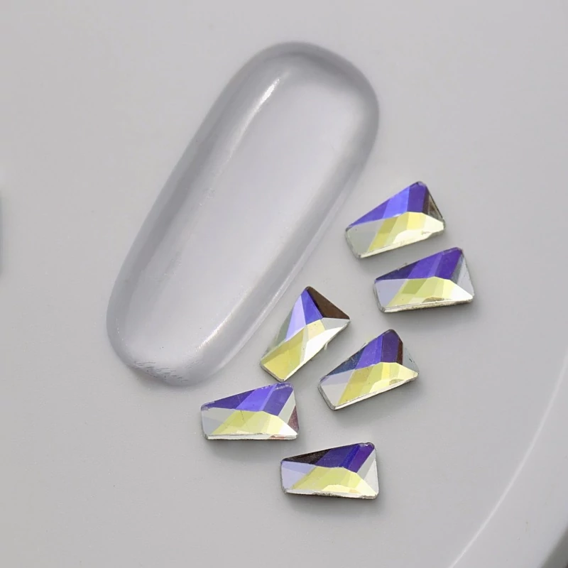 Strassz formakő moonlight színben, szabálytalan hasáb formában. Csajos színvilága és egyedi formája méltán népszerűvé teszi, körömre ragasztva vagy mandalák, ajándéktárgyak felületének dekorálásához kíválóan alkalmazható. Flatback no hotfix típusú üvegforma.